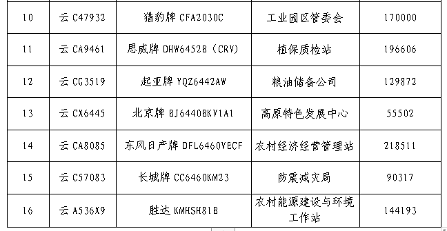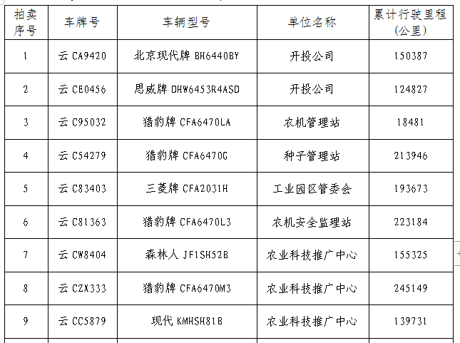 (一)拍賣車輛所有權(quán),詳見(jiàn)下表: