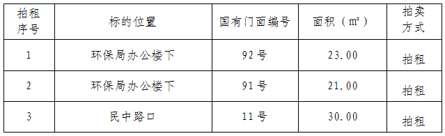 (二)拍租國(guó)有門面5年期使用權(quán),詳見(jiàn)下表: