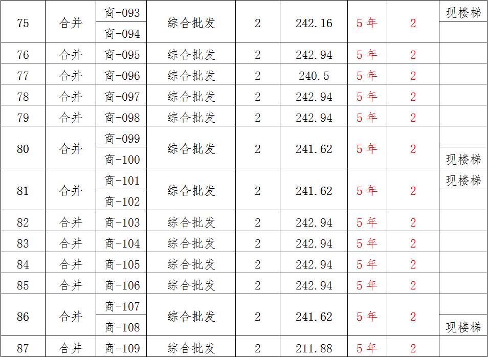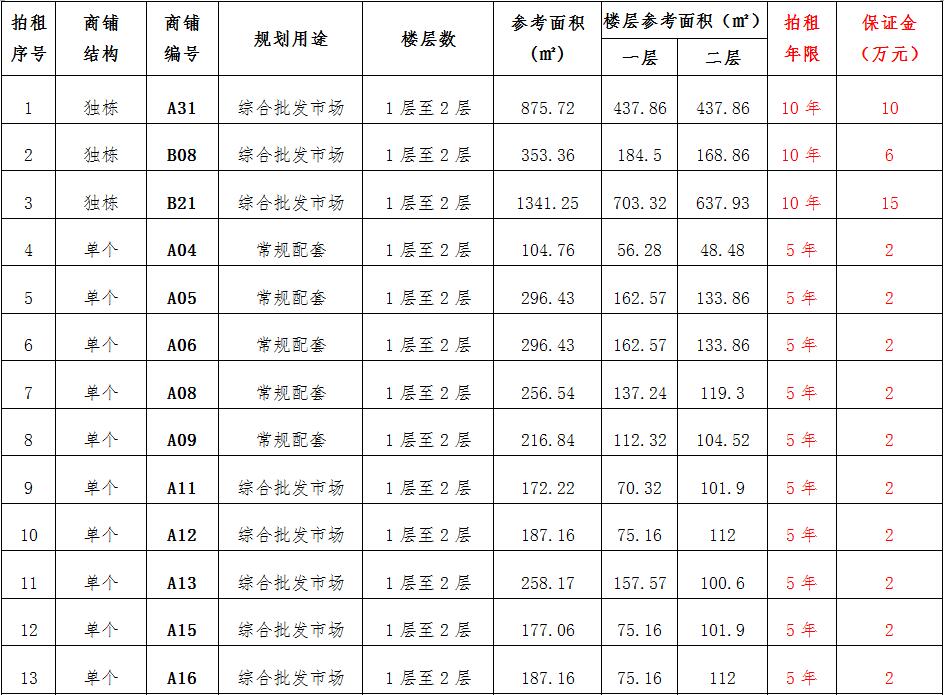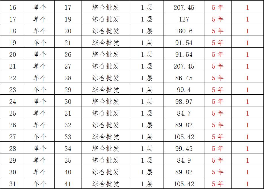 (一)拍租位于鎮(zhèn)雄縣南臺街道呢嚕坪安置點(diǎn)7棟獨(dú)立商鋪使用權(quán)。以棟為單位拍租。詳見下表: