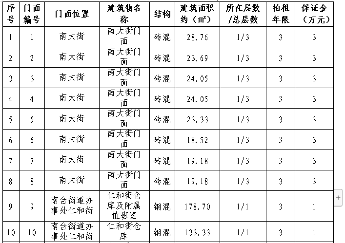 拍租15個(gè)國有門面使用權(quán),詳見下表: