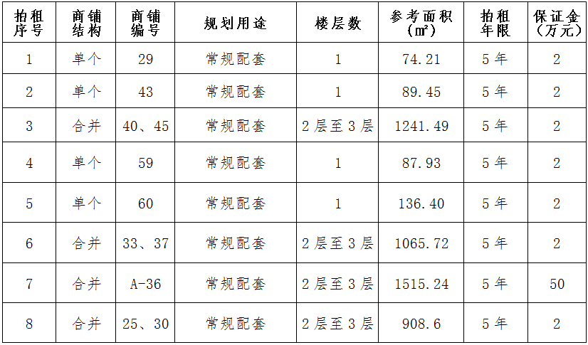 四、預交競租保證金:按商鋪簡介標準預交競租保證金。競租人交納的保證金以銀行到賬時間為準(保證金交納人名稱與競租報名人名稱必須一致),截止時間2021年12月10日16時30分。成交的競租保證金轉(zhuǎn)為第一年租金的一部份,未成交的競租保證金全額退還,不計利息。