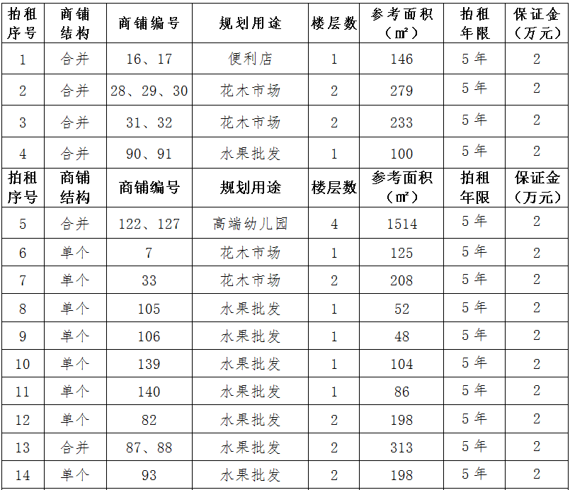 (二)拍租位于鎮(zhèn)雄縣舊府街道高山大地安置點23間(棟)商鋪使用權(quán)。以間(棟)為單位拍租。詳見下表:
